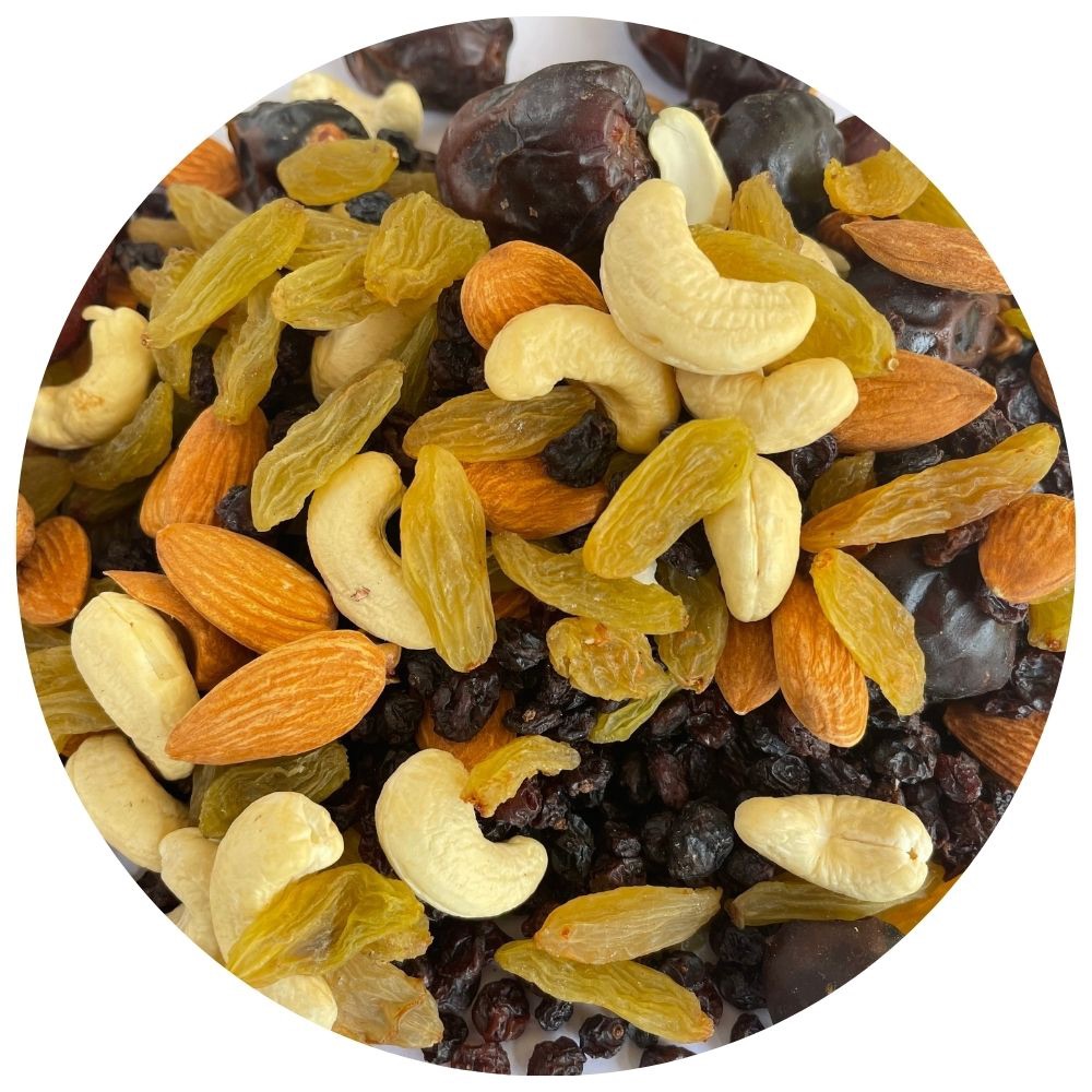 Panch Mewa is a curated mix trial pack which contains Dry Fruit and Nut Mix weighing 450 GMS. Panch Mewa as the name suggests is a mix of 5 ( Panch) nuts and dried fruits (Mewa) including Dried Green Raisins, Dried Black Raisins, Cashew Nuts 320 grade, Premium Almonds & Dates.